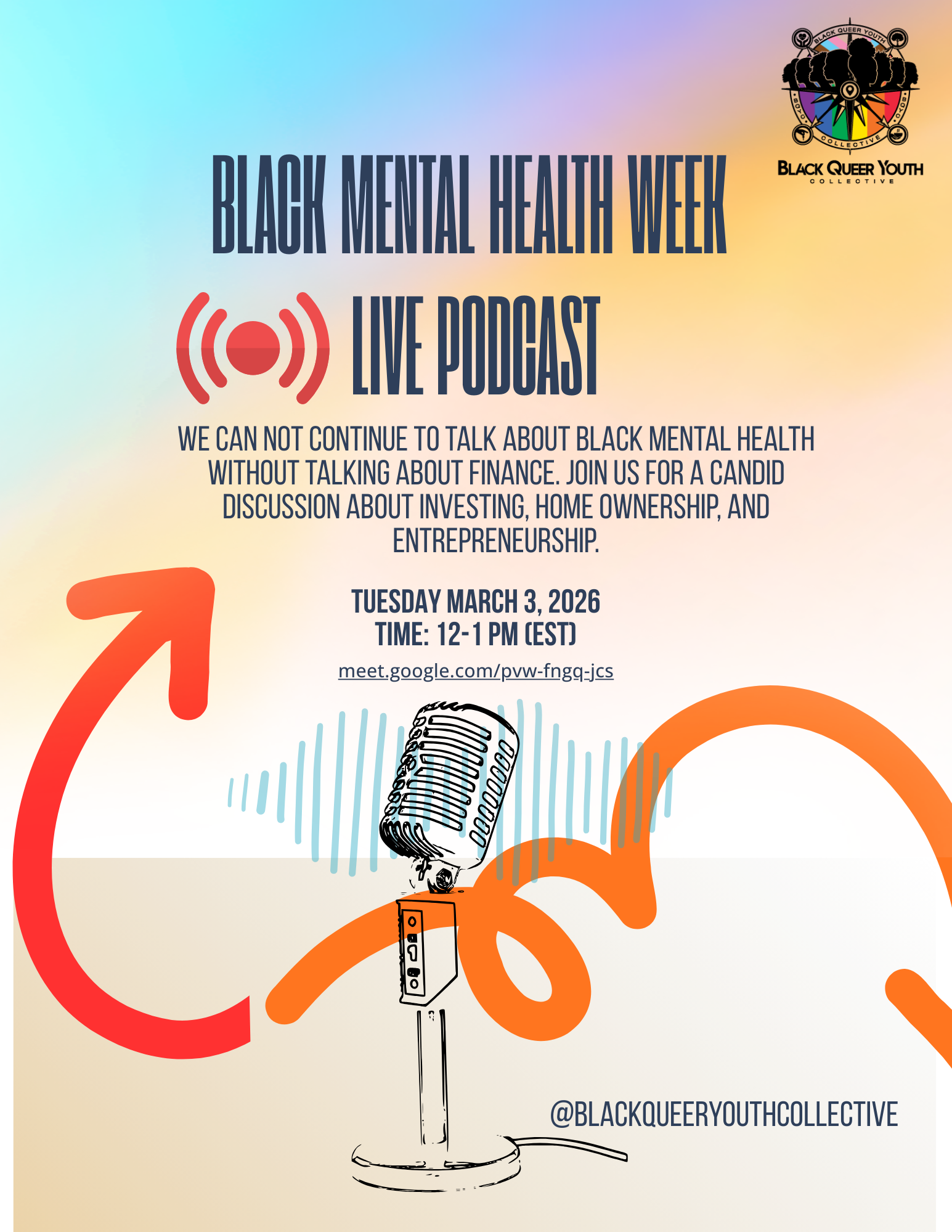 Black Mental Health Week LIVE podcast Tuesday, March 3, 2026 12:00 PM 1:00 PM Virtual Event (map) Google Calendar ICS